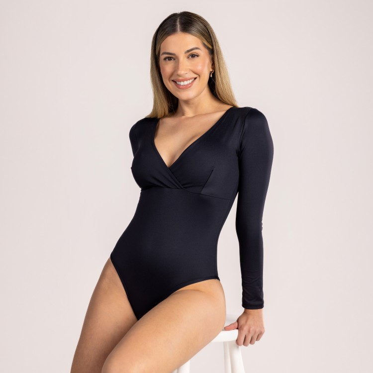 Body Ombro a Ombro Manga Longa Preto