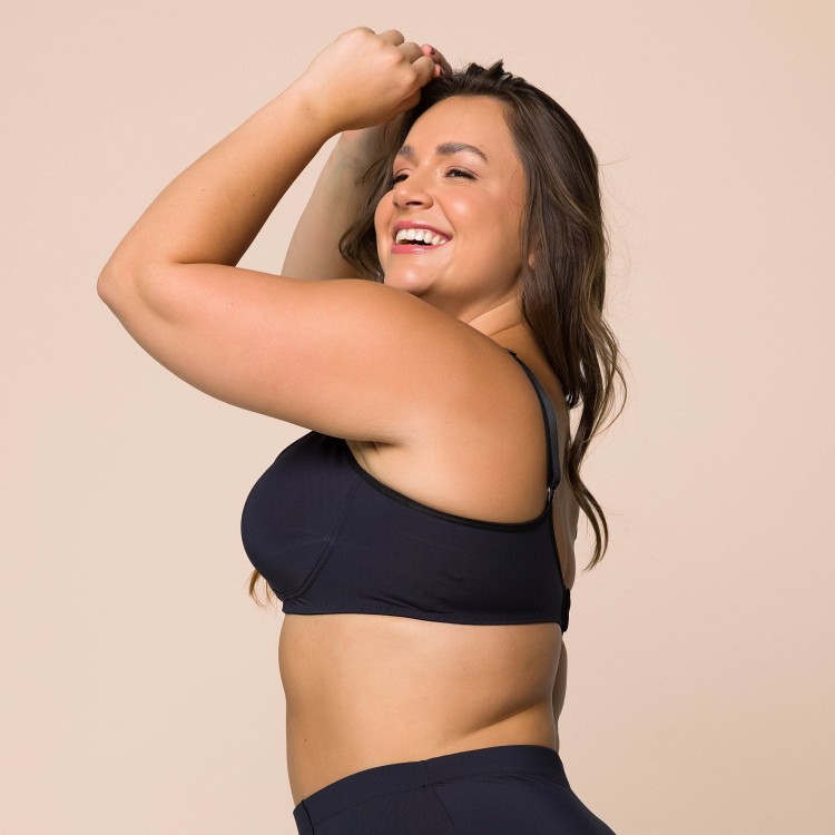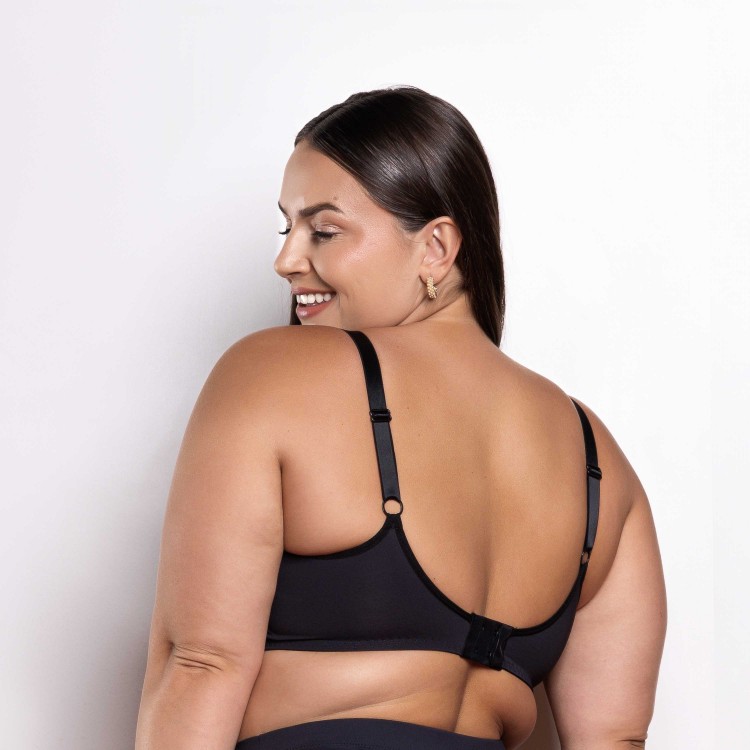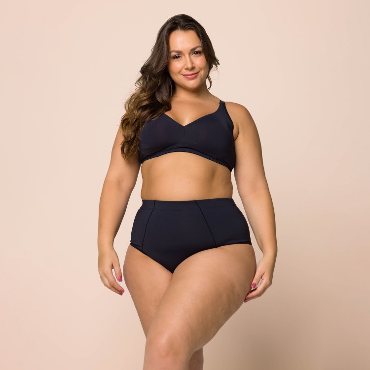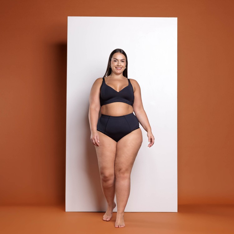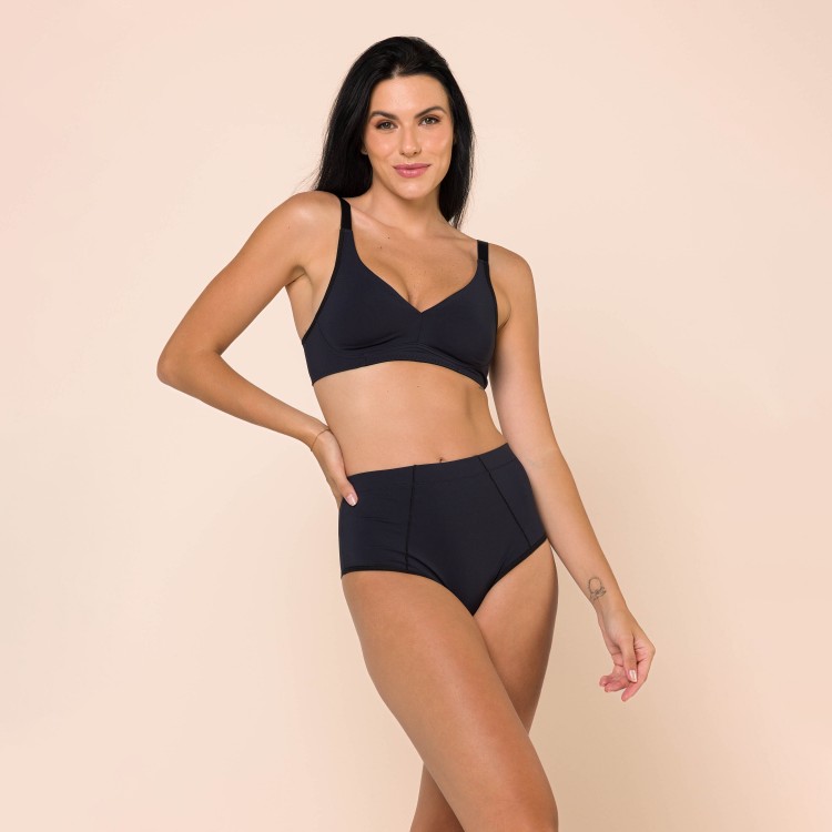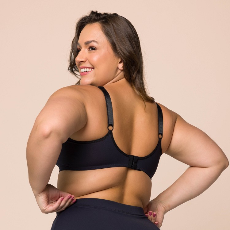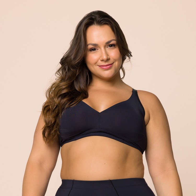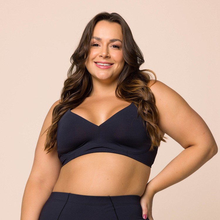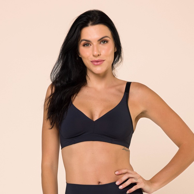 Sutiã sem aro, com alças largas e elástico reforçado.