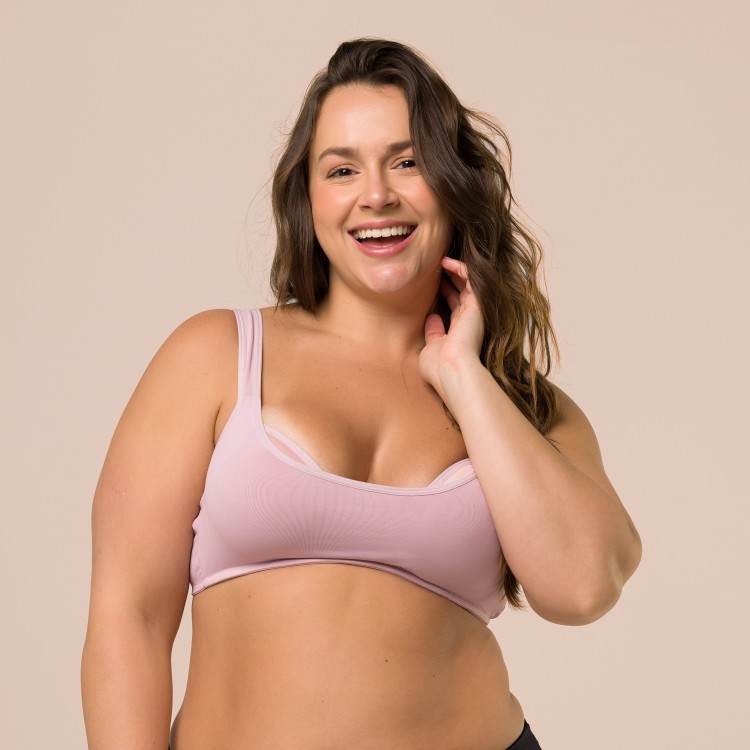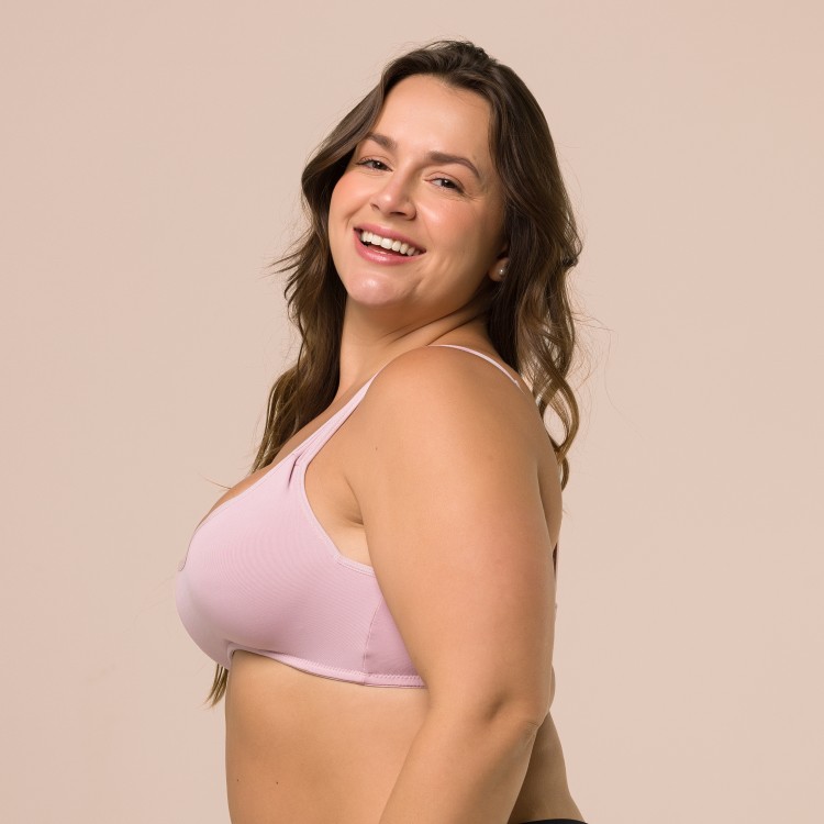 Sutiã com bojo e sem aro. Possui base reforçada, alças fixas e mais largas.