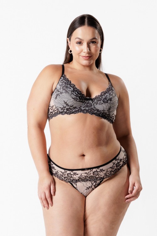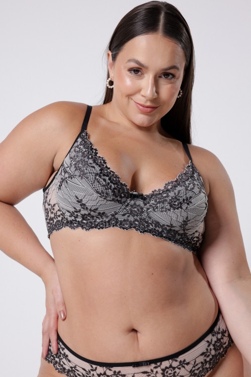 Sutiã Em Renda , sem bojo , possui aro e fecho nas costas .