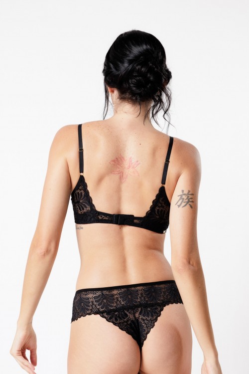 Sutiã Em Renda , sem bojo , possui aro e fecho nas costas .