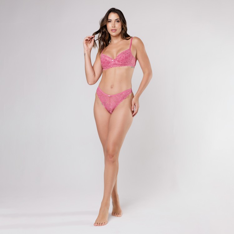 Sutiã Em Renda , sem bojo , possui aro e fecho nas costas .
