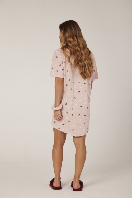 Leve, confortável e ideal para os dias quentes, esta camisola em algodão macio, proporcionando um toque suave na pele. O design delicado com estampa de coração adiciona um charme especial, perfeito para quem busca estilo e bem-estar no dia a dia.
