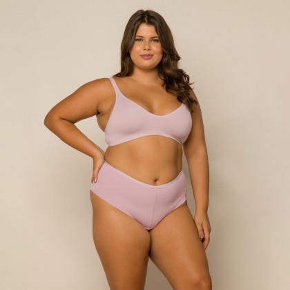 Sutiã sem arco, com alças largas e elástico reforçado.