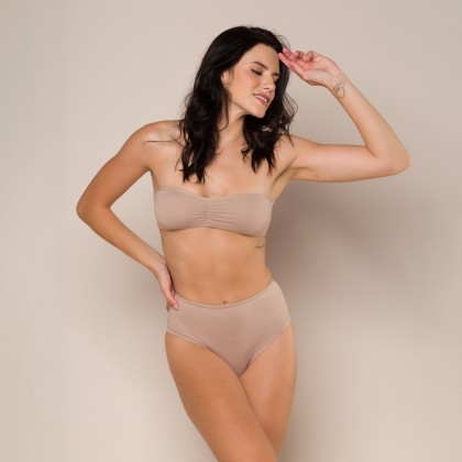 Sutiã básico modelo tomara que caia, possui bojo removível e frente franzida com reforço interno para acomodar perfeitamente os seios.