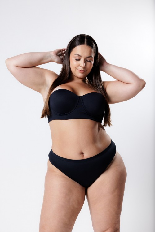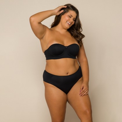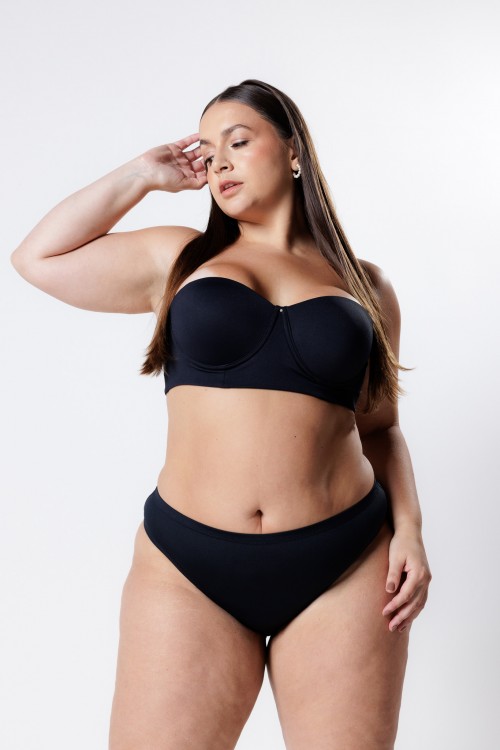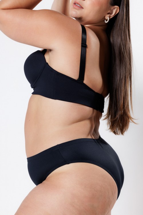 Possui bojo de espuma com aros e laterais estruturadas com barbatanas internas.