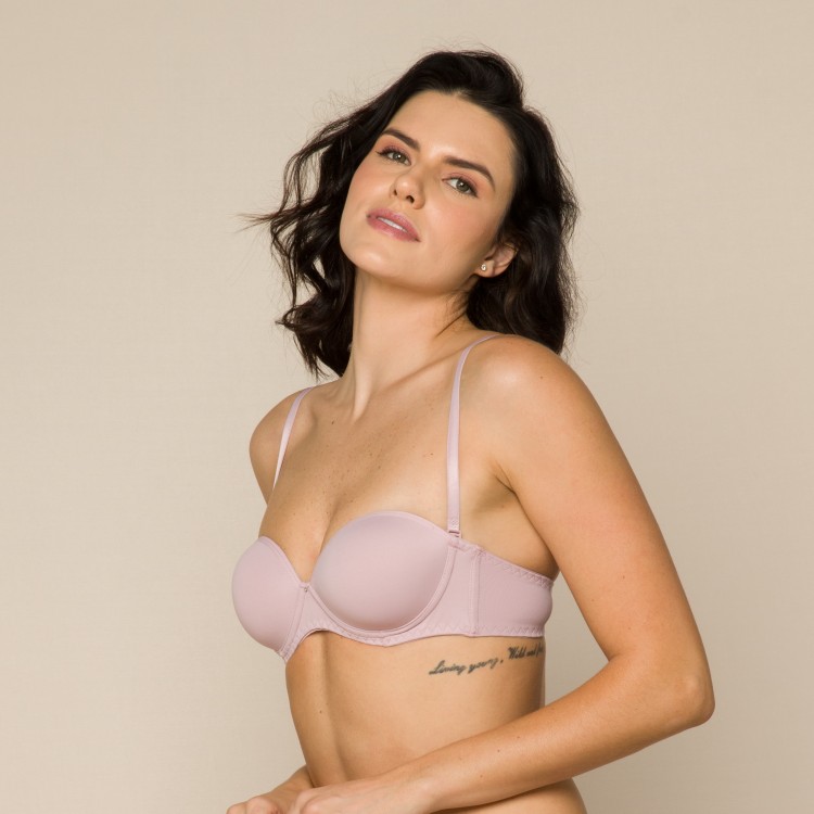 Sutiã tomara que caia tradicional com bojo de espuma e aro.
